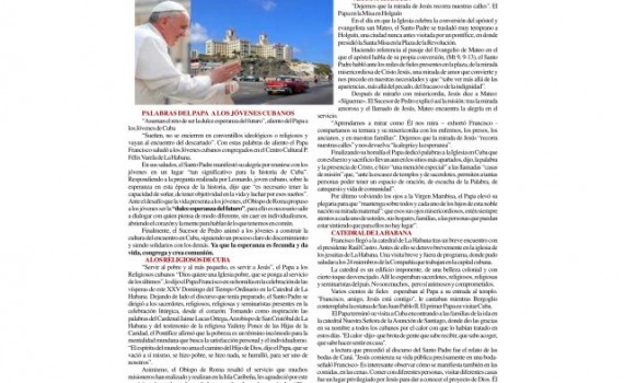 Included is the schedule of the Papal visit to USA and the remaining schedule for Cuba.