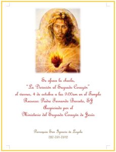 Come and reflect with us about the love of God our Lord, and how it manifests itself through the Sacred Heart of Jesus. Presentation organized by the Ministry of the Sacred Heart of Jesus on Friday, October 4, 2019, at … Blog Sacred Heart Devotion (in Spanish)