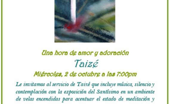 This next Wednesday, October 2, 2019, we’ll have a Taizé Service at 7:00pm at the Parish Temple.